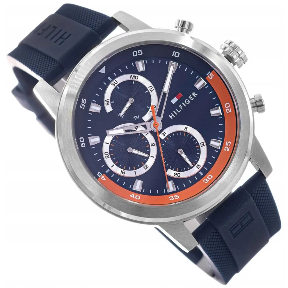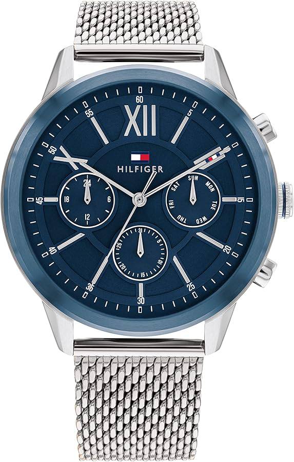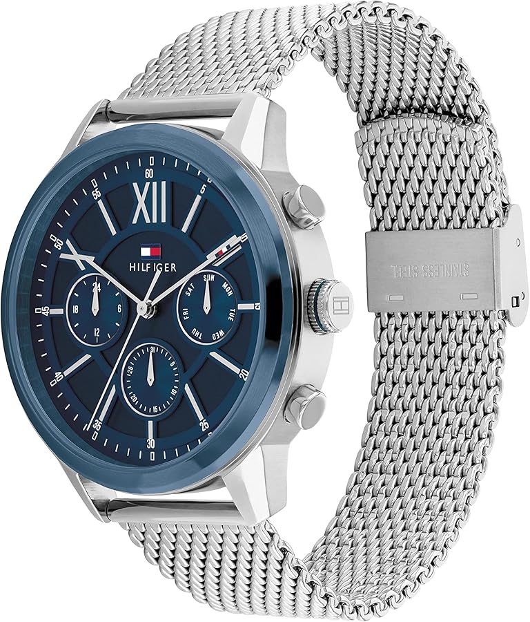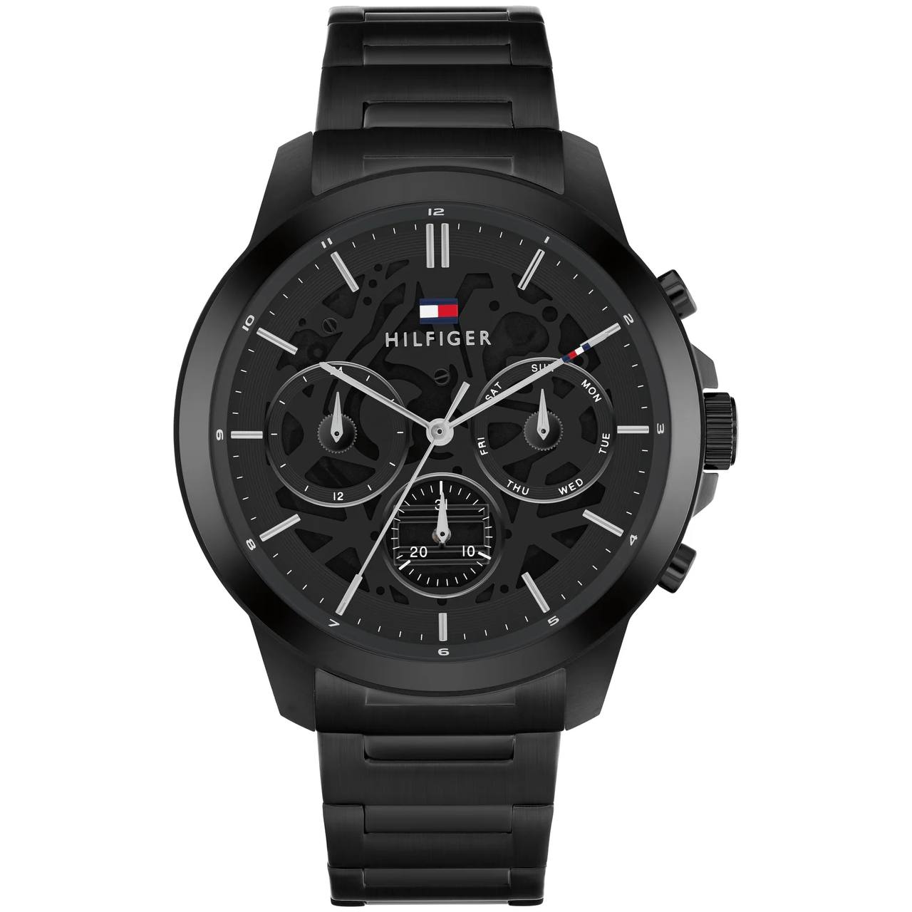 The Tommy Hilfiger men’s watch blends innovative design with craftsmanship. Featuring luxury-inspired integrated bracelets, a skeleton dial with CD-textured outer zone, and applied stick indexes, it’s a balance of style and sophistication.