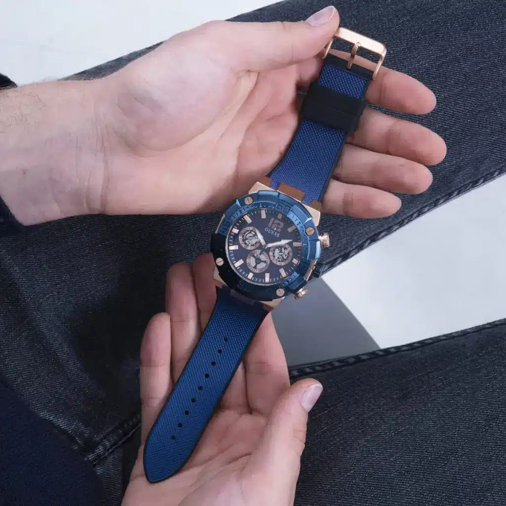 Original Guess men's watch, model (Hendrix) W1309G4, blue color, silver and copper metal strap