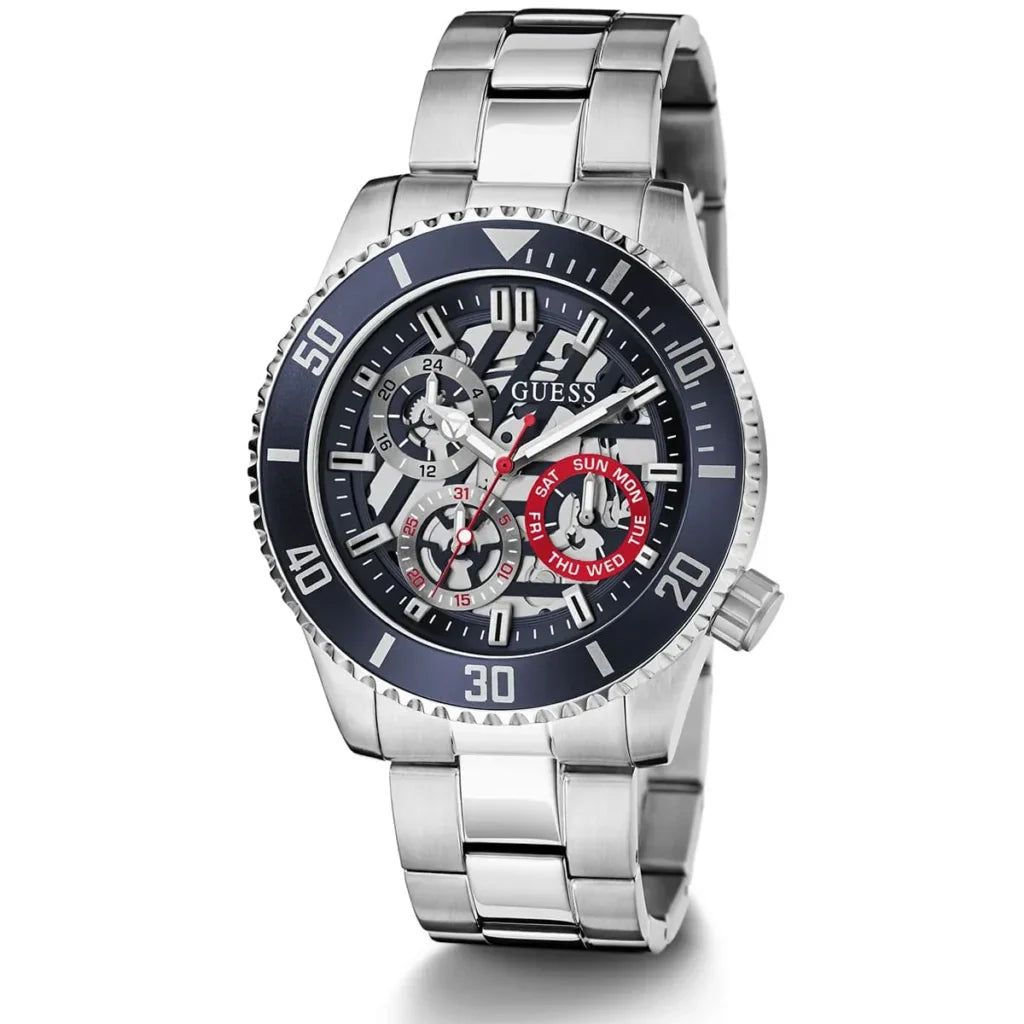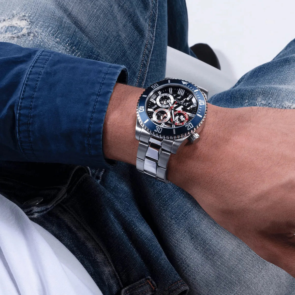 Original Guess men's watch, model (Hendrix) W1309G1, blue color, silver metal strap