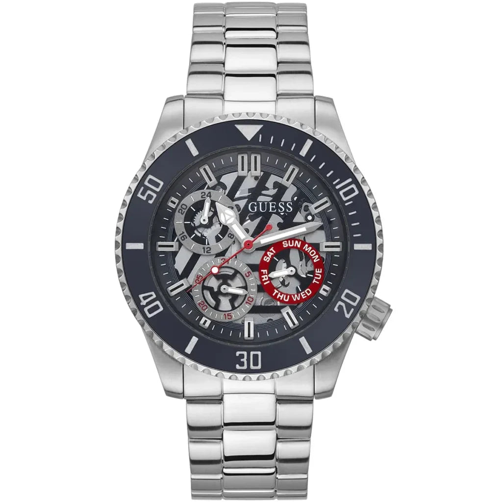 Original Guess watch for men, model (Odyssey) W1107G2, blue color, with silver metal strap