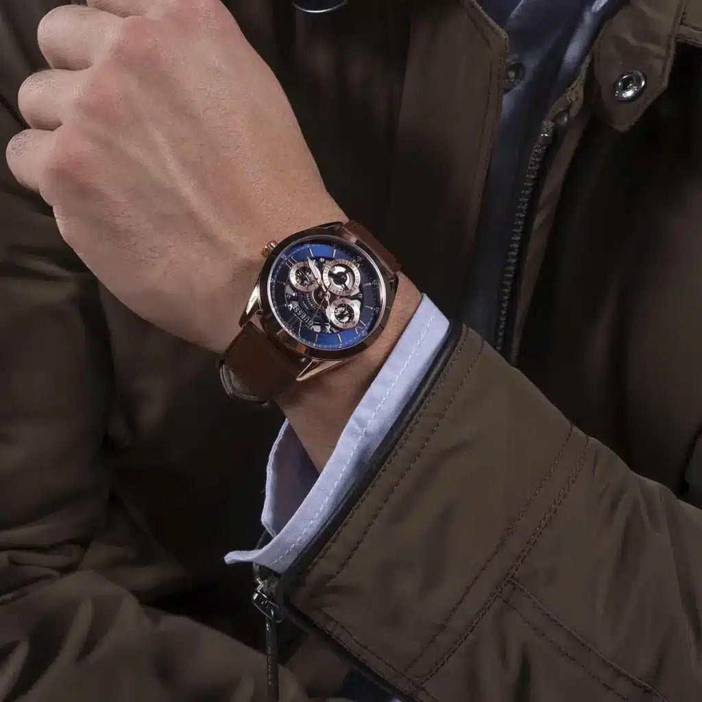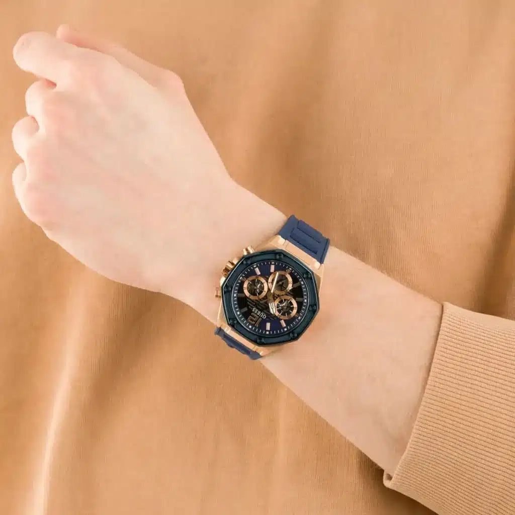 Original Guess Men's Watch Model (Commander) GW0056G5 in Blue Color with Silver and Copper Metal Strap