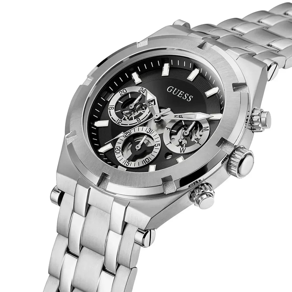 Original Guess men's watch, model (Vault) W0746G2, black color, with silver metal strap