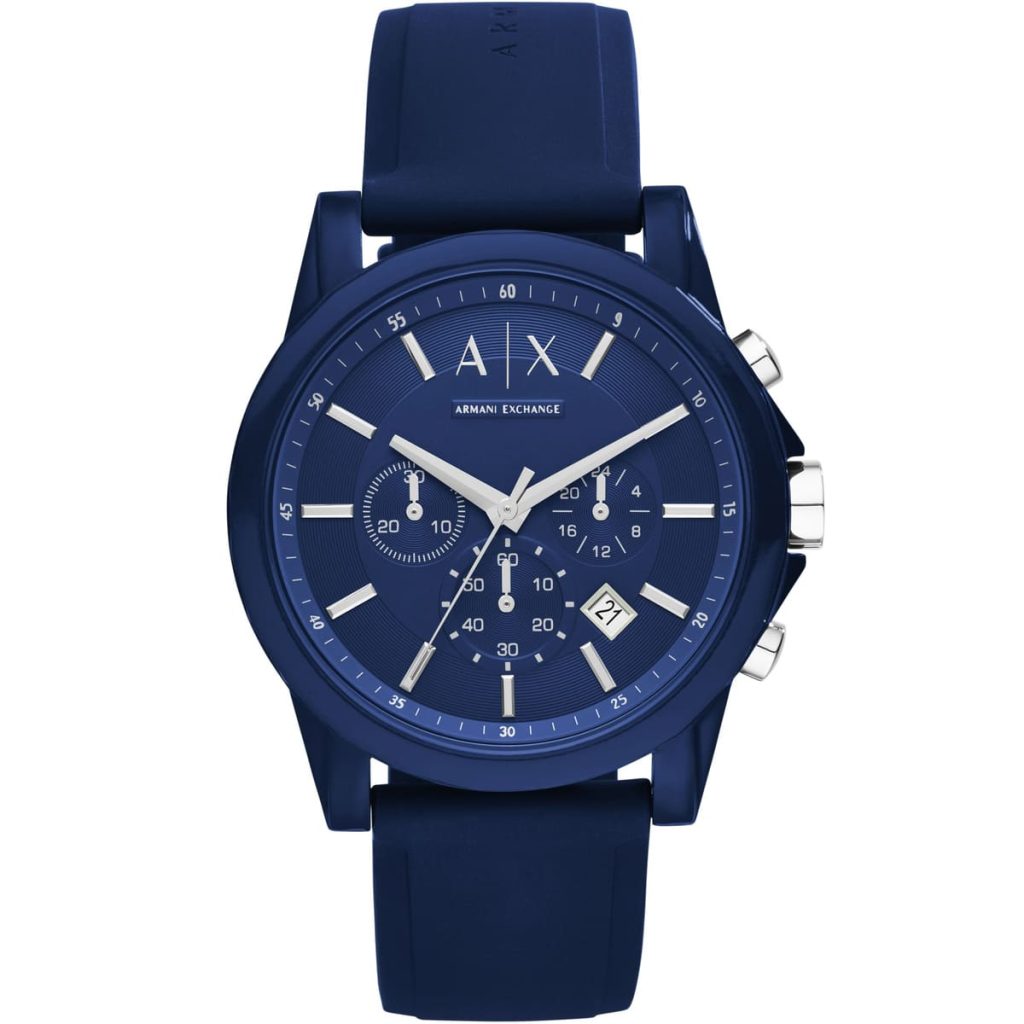 ساعة ارماني اكستشنج (Armani Exchange AX) رجالي أصلية موديل (اوتر بانكس) AX1327 Outerbanks بلون ازرق و استيك مطاط بلون ازرق