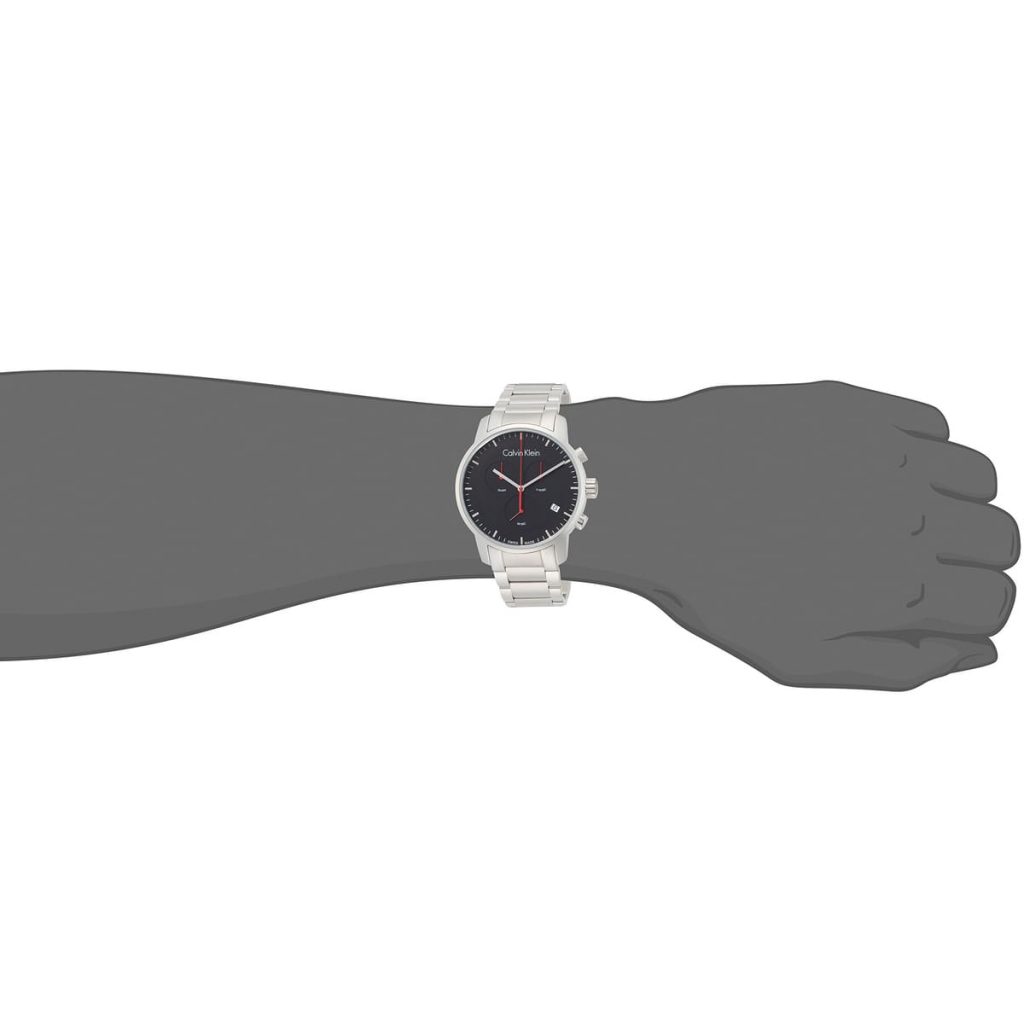 ساعة كالفن كلاين للرجال أصلية موديل (سيتي) City K2G27141 بلون اسود و استيك معدن بلون فضي