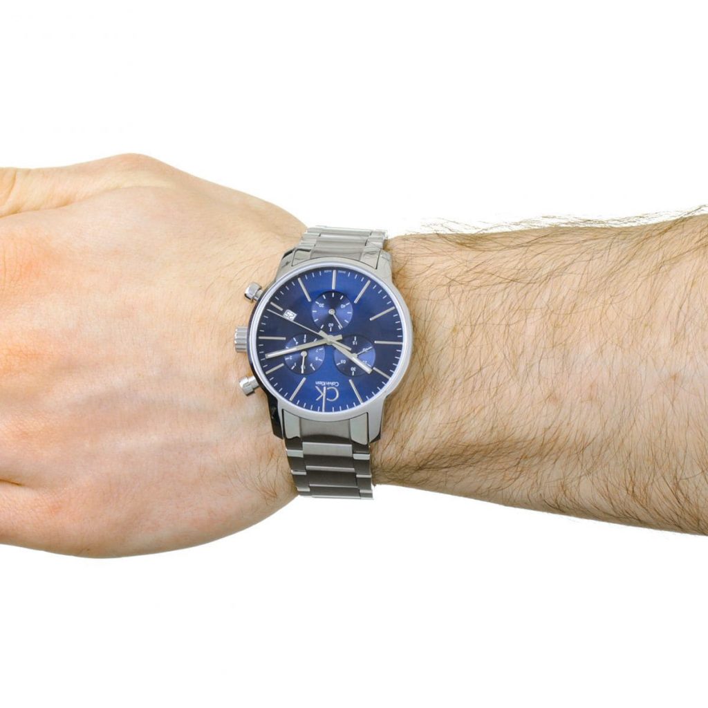 ساعة كالفن كلاين للرجال أصلية موديل (سيتي) City K2G2714N بلون ازرق و استيك معدن بلون فضي