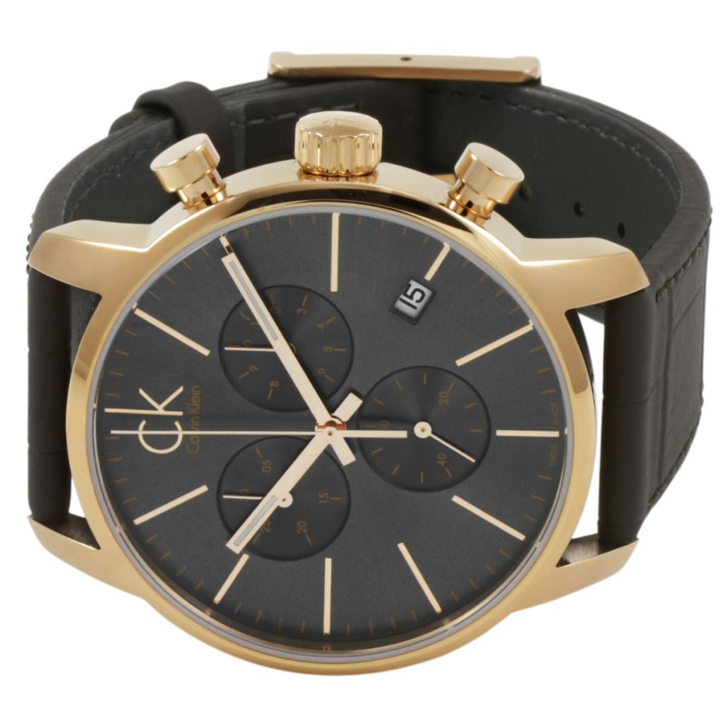 ساعة كالفن كلاين للرجال أصلية موديل (سيتي) City K2G276G3 بلون اسود و استيك جلد بلون بني
