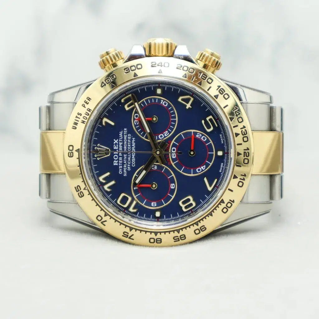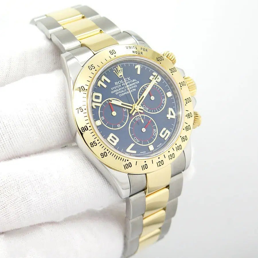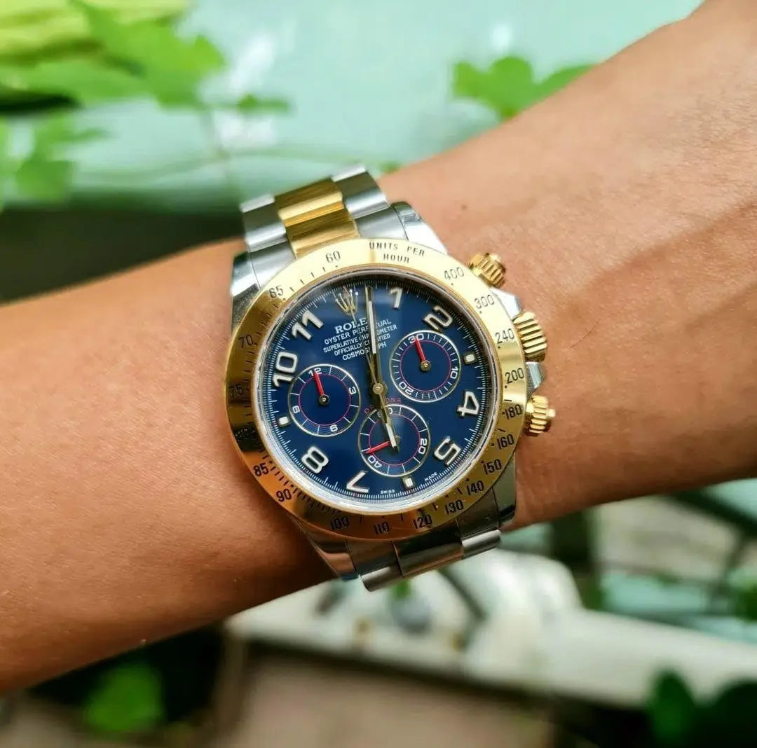 • Rolex Daytona Mirror Original Blue Dial Stainless Steel Band Silver x Gold