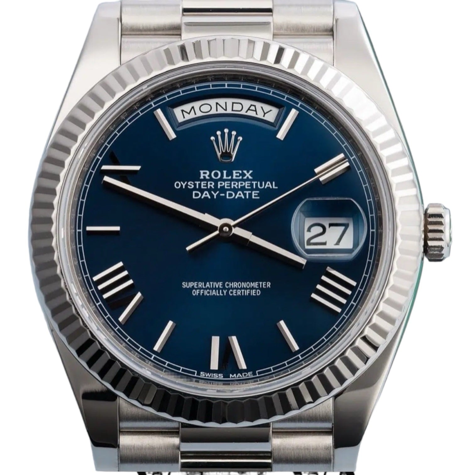 Rolex Day-Date Mirror Original Blue Dial with Silver Stainless Steel Strap