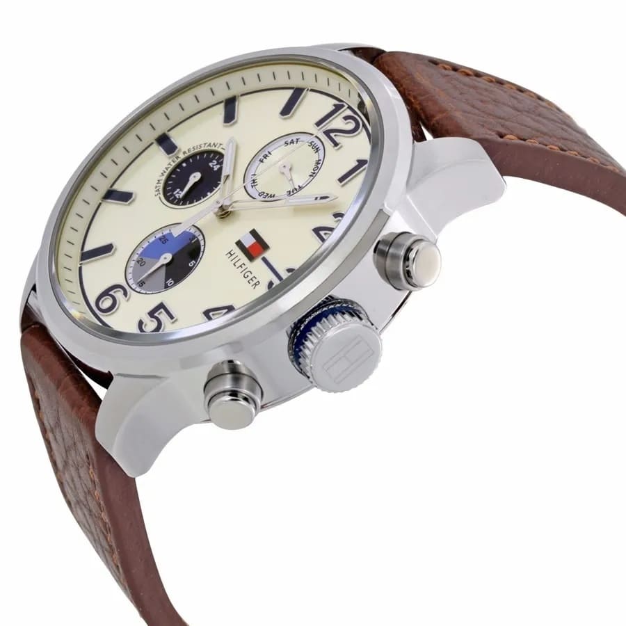 White color with brown natural leather elasticTommy Hilfiger Men's Ken Watch 1791400 | Watches Prime