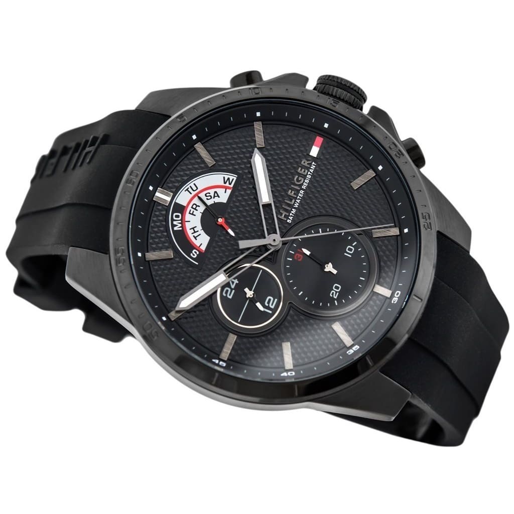 Black color and black silicone rubberTommy Hilfiger Men's Decker Watch 1791352 | Watches Prime